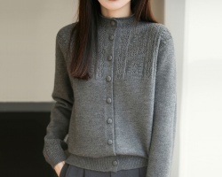 NT$1398半高領提花女款毛衣外套秋冬純色百搭時尚寬鬆外搭衫,立領鏤空鉤花透出朦朧肌膚,藏肉顯瘦不臃腫~詳情