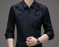 NT$1398黑金2025秋冬裝男士立領加絨夾克中老年男士商務爸爸裝外套保暖爺爺棉服詳情 - 新款加絨長袖衫NT$1050