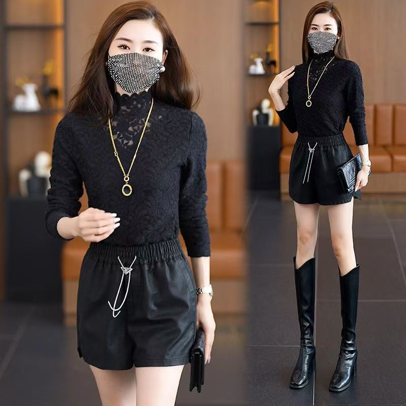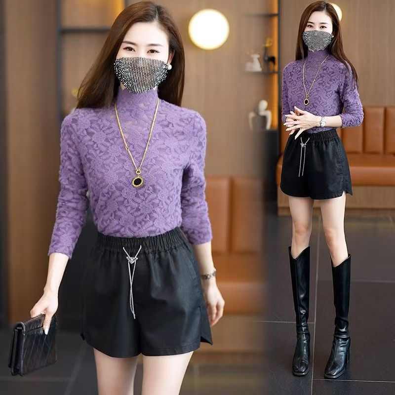 【半高領蕾絲加绒打底衫】半高領蕾絲設計,凸顯優雅氣質,透氣面料,保暖內搭,柔軟親膚,簡約百搭,時尚顯年輕!