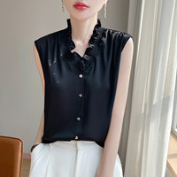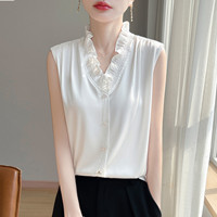 木耳花邊V領背心,柔軟飄逸,緞面如絲,輕盈如羽,知性時髦,吸汗透氣性好,舒適感不言而喻,好版型不挑人!